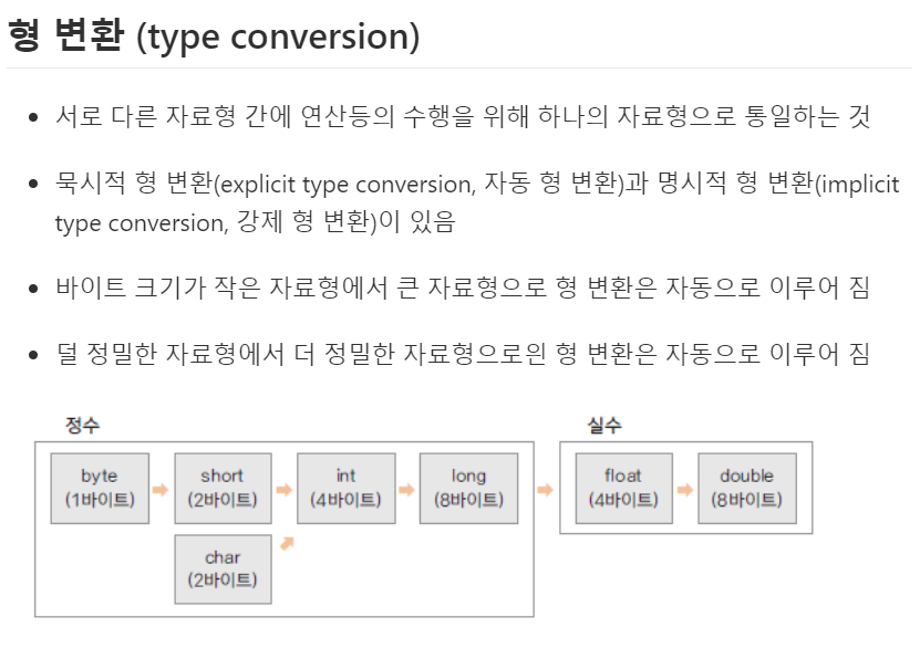 -묵시형(프로그램이 자동 변환) , 명시적(프로그래머가 선언)