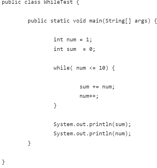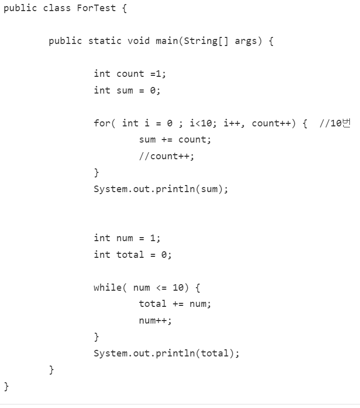 For 문과 While 문으로 작성한 1부터 10까지 더하기.
