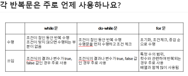 - Do-while -> 먼저 수행을 한번하고 체크를하는 반면,