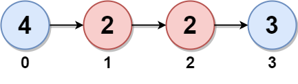 In a linked list of size n, where n is even, the ith node (0-indexed) of the linked list is known as the twin of the (n-1-i)th node, if 0 <= i <= (n / 2) - 1.